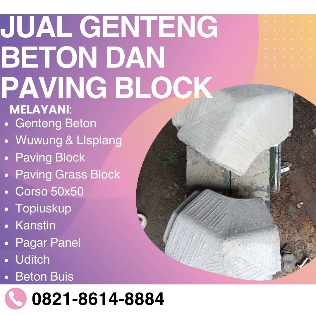 "Genteng beton adalah solusi modern untuk kebutuhan atap rumah masa kini. Dibandingkan genteng tradisional, genteng beton lebih unggul dari segi kekuatan, keawetan, dan tampilan estetis. Dibuat dari campuran semen, pasir halus, dan pigmen warna berkualitas tinggi, genteng beton mampu bertahan hingga puluhan tahun. Selain tahan lama, genteng beton juga tahan bocor karena daya serap airnya yang rendah. Bobotnya yang ideal membuat genteng lebih stabil menahan terpaan angin kencang. Proses produksi presisi menjadikan pemasangan lebih cepat dan hasil akhir lebih rapi. Estetika juga menjadi nilai tambah genteng beton. Dengan berbagai pilihan warna dan model, Anda dapat menyesuaikan atap dengan desain rumah idaman. Warna tidak mudah pudar dan tetap indah meskipun terkena paparan sinar matahari setiap hari. 📞 Percayakan kebutuhan genteng Anda pada kami. Hubungi 0821-8614-8884 untuk informasi harga dan pemesanan langsung dari pabrik."